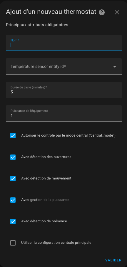 You can now define a central configuration which will allow you to share certain attributes on all your VTherms (or only part of them). To use this possibility, you must: